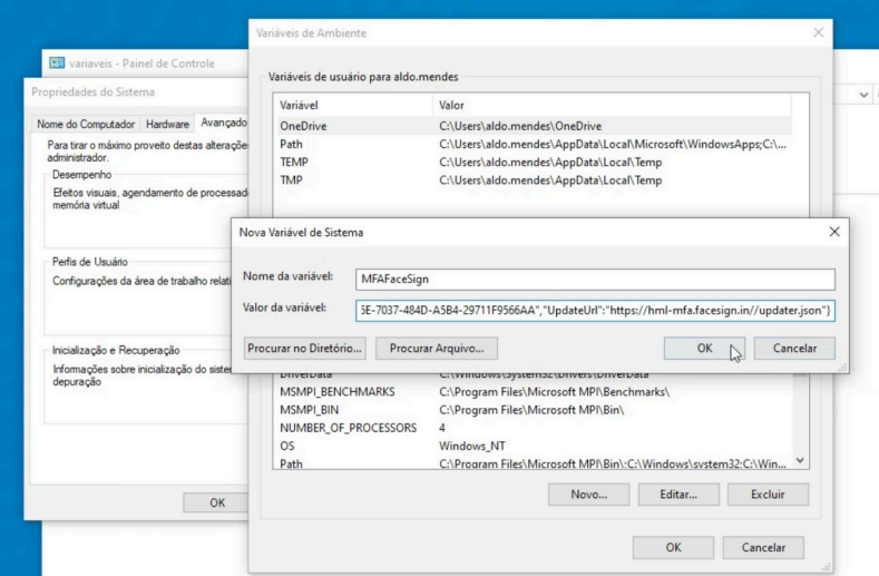 You need to create an environment variable in the system so that the MFA client can communicate with the Facesign platform.