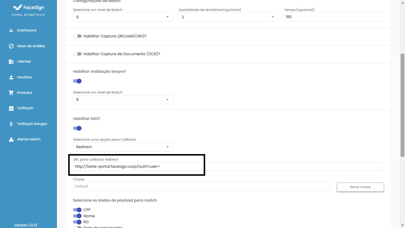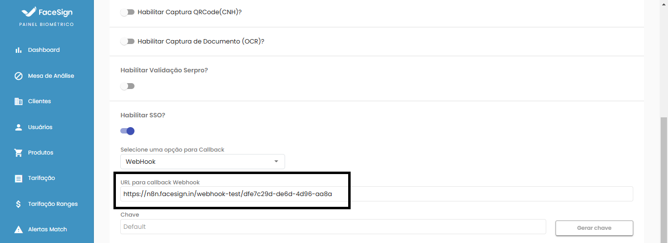 Configure in FaceSign Panel: Access the FaceSign admin panel, go to the SSO features section and enter the defined callback URL.