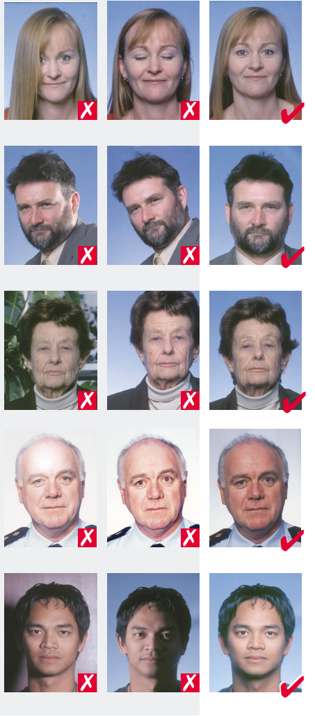* Neutral expression - the face should have a neutral expression; the person should not smile, raise their eyebrows, squint, or frown.