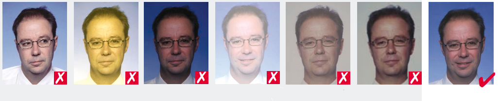 * Glasses - the photo should be captured without glasses. If it is impossible not to wear glasses, the dropout by the biometric engine is intensified.