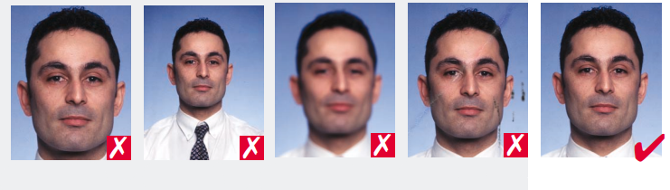 * The photo must be taken facing forward - look directly at the camera and keep your head straight. The face should be centered. The shoulders should be aligned, parallel to the camera image plane.