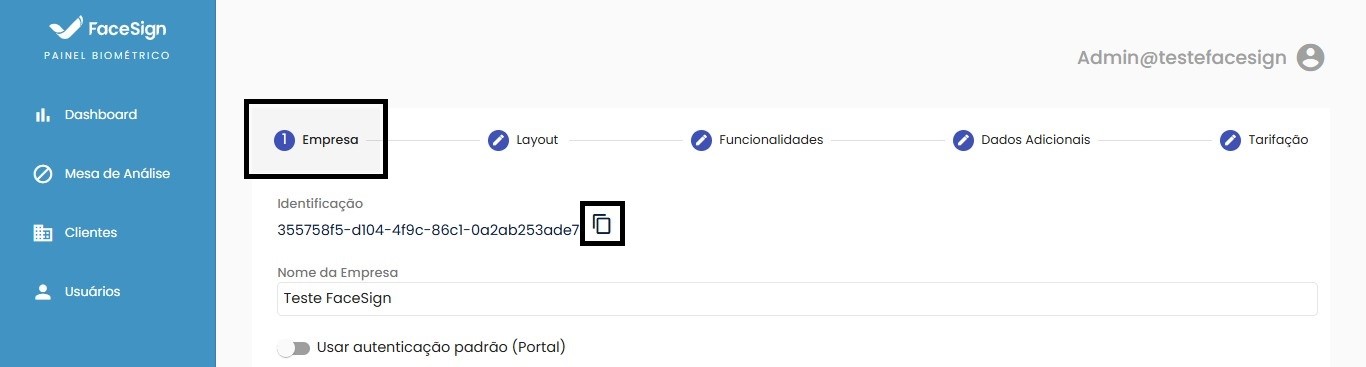 Na aba "Empresa", copie o ID em "Identificação":