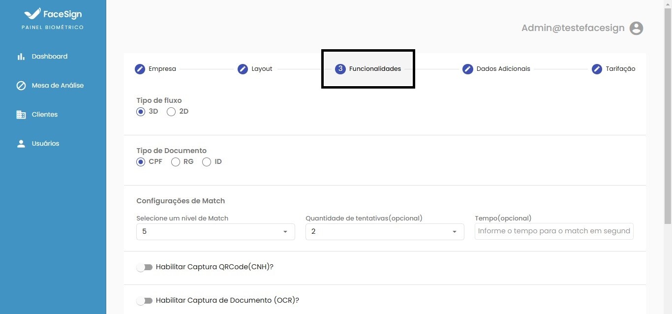 Visando maior segurança no tráfego de dados sensíveis, foi implementado um fluxo em que inserimos os dados através de uma API, que retorna um token criptografado , direcionando assim para uma url que não exibe dados sensíveis, fazendo a biometria utilizando estes dados previamente inseridos como parâmetros. Este token poderá ser utilizado uma única vez expirando após sua utilização, podendo ser definido um prazo máximo para que seja utilizado.